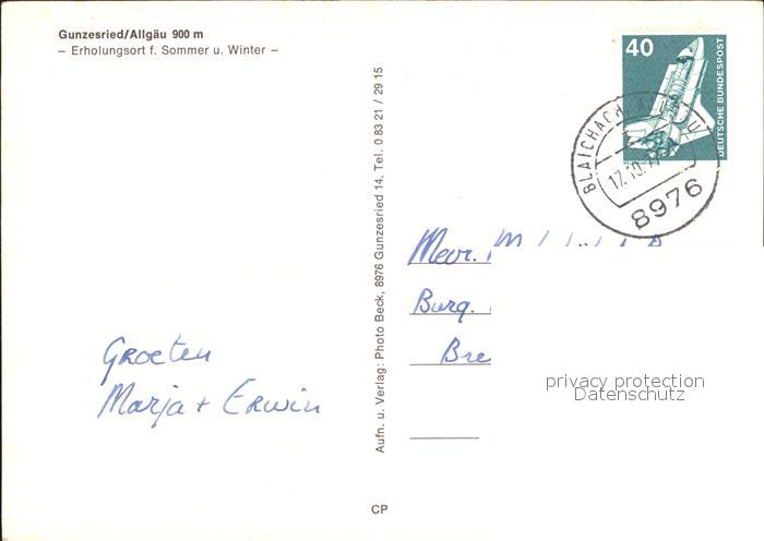 72272634 alte Postkarte Gunzesried postalisch gelaufen Erhaltung siehe scans KatCode: 11110009780115