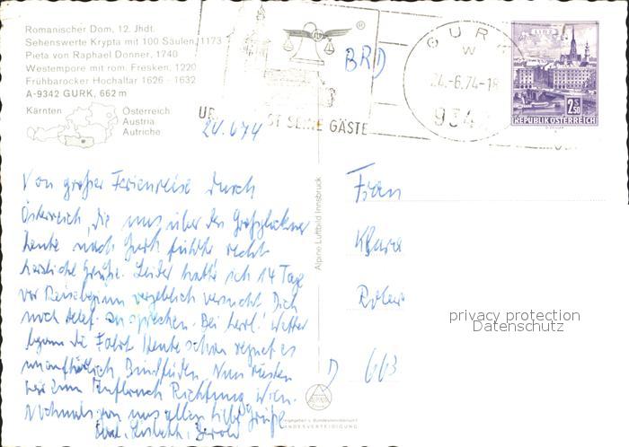 72072117 alte Postkarte Gurk Dom zu Gurk Dom postalisch gelaufen Erhaltung siehe scans KatCode: 11390213020508