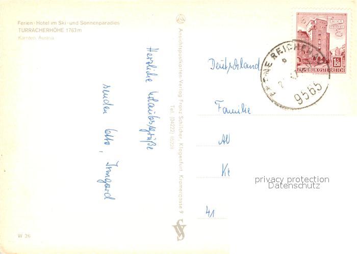 73312332 alte Postkarte Gurk Ferienhotel im Skigebiet Turracherhoehe postalisch gelaufen Erhaltung siehe scans [FriedD77] KatCode: 11390213020508