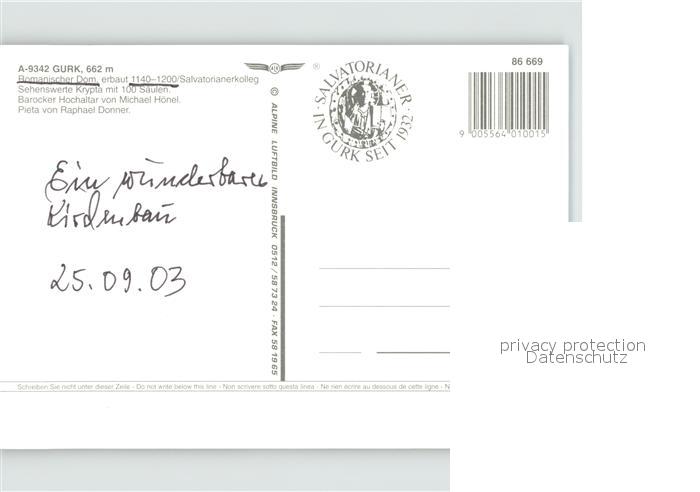 71920115 Gurk Fliegeraufnahme Romanischer Dom postalisch nicht gelaufen Erhaltung siehe scans KatCode: 11390213020508