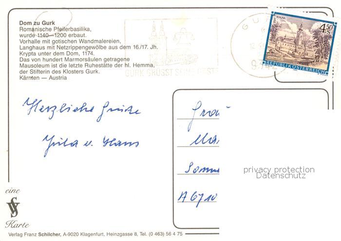 73856042 alte Postkarte Gurk Gurktal Kaernten AT Ansicht mit Dom Romanische Pfeilerbasilika postalisch gelaufen Erhaltung siehe scans [FriedD77] KatCode: 11390213020508