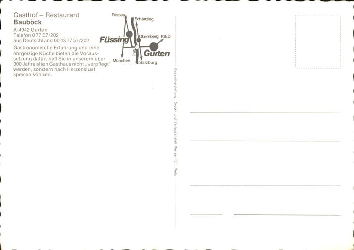 71431800 Gurten Oberoesterreich Gasthof Restaurant Bauboeck postalisch nicht gelaufen Erhaltung siehe scans KatCode: 11390311041208