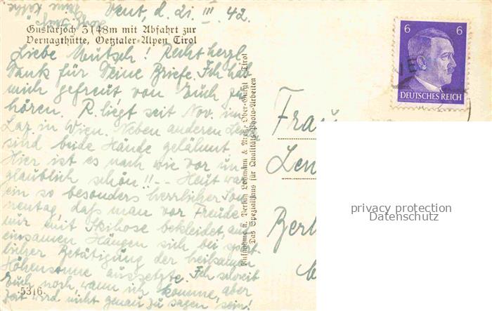 74037123 alte Postkarte Guslarjoch 3148m oetztal Tirol AT Winterpanorama oetztaler Alpen Abfahrt zur Vernagthuette postalisch gelaufen Erhaltung siehe scans [FriedD77] KatCode: 11390334070214