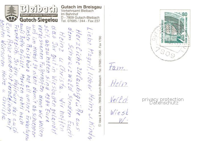 73011182 alte Postkarte Gutach-Bleibach Siegelau Trachtenpaar postalisch gelaufen Erhaltung siehe scans [WerneD78] KatCode: 11110008316014