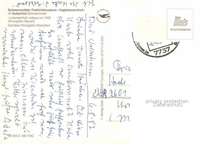 72891799 alte Postkarte Gutach Breisgau Schwarzwaelder Freilichtmuseum Vogtsbauernhof Lorenzenhof postalisch gelaufen Erhaltung siehe scans [LiesaD40] KatCode: 11110008316014