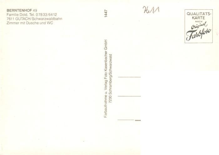 73928919 Gutach Schwarzwald Berntenhof postalisch nicht gelaufen Erhaltung siehe scans [FriedD77] KatCode: 11110008317039