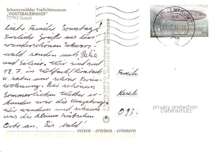 72971278 alte Postkarte Gutach Schwarzwald Freilichtmuseum Vogtsbauernhof postalisch gelaufen Erhaltung siehe scans [PaolaD17] KatCode: 11110008317039
