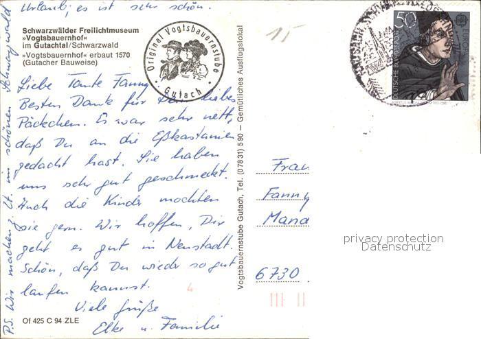 72492222 alte Postkarte Gutach Schwarzwald Freilichtmuseum Vogtsbauernhof Schlafkammer Handwerkerkammer postalisch gelaufen Erhaltung siehe scans KatCode: 11110008317039
