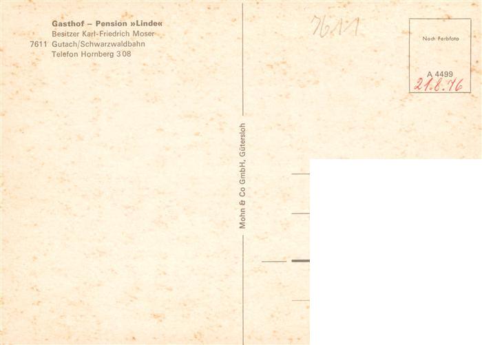 73928056 Gutach Schwarzwald Gasthof Pension Linden postalisch nicht gelaufen Erhaltung siehe scans [FriedD77] KatCode: 11110008317039