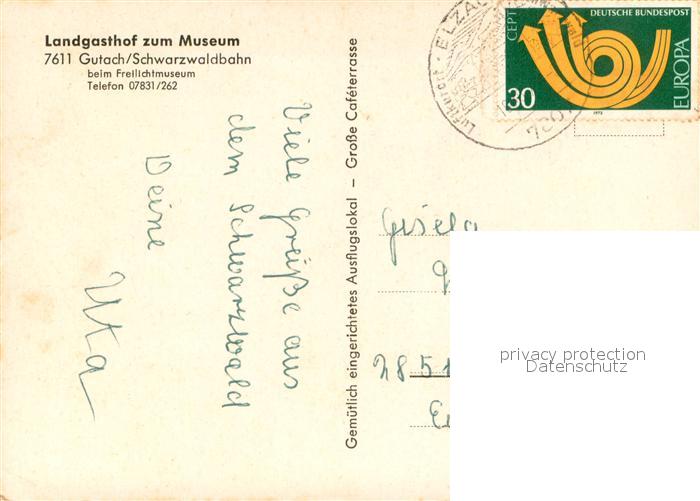 73723877 alte Postkarte Gutach Schwarzwald Landgasthof zum Museum Freilichtmuseum postalisch gelaufen Erhaltung siehe scans [FriedD77] KatCode: 11110008317039