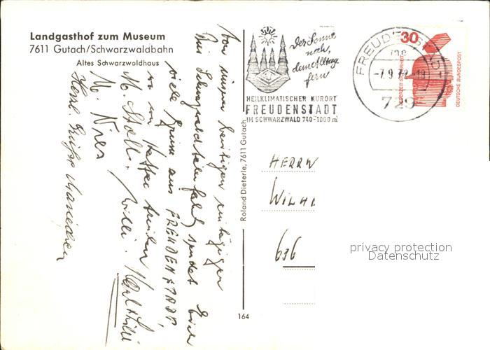 72530824 alte Postkarte Gutach Schwarzwald Landgasthof zum Museum postalisch gelaufen Erhaltung siehe scans [LiesaD40 kt094box] KatCode: 11110008317039