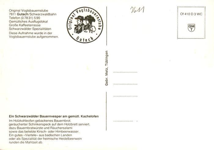 73928924 Gutach Schwarzwald Original Vogtsbauernstube Schwarzwaelder Bauernvesper am Kachelofen postalisch nicht gelaufen Erhaltung siehe scans [FriedD77] KatCode: 11110008317039