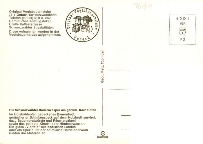 73928633 Gutach Schwarzwald Original Vogtsbauernstube Schwarzwaelder Bauernvesper am Kachelofen postalisch nicht gelaufen Erhaltung siehe scans [FriedD77] KatCode: 11110008317039