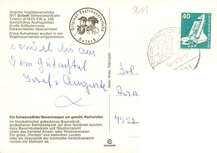 73928394 alte Postkarte Gutach Schwarzwald Original Vogtsbauernstube Schwarzwaelder Bauernvesper am Kachelofen postalisch gelaufen Erhaltung siehe scans [FriedD77] KatCode: 11110008317039