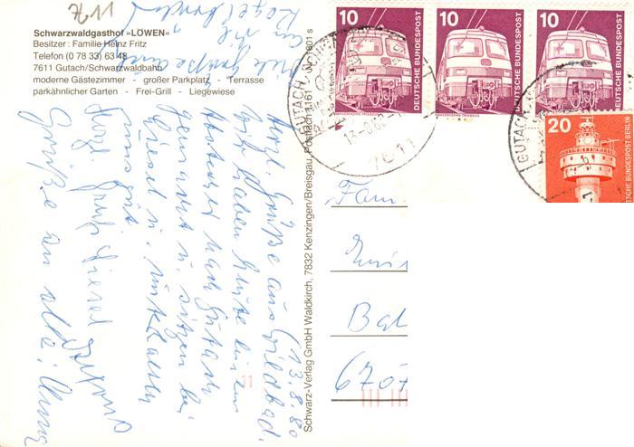 73928925 alte Postkarte Gutach Schwarzwald Schwarzwaldgasthof Loewen postalisch gelaufen Erhaltung siehe scans [FriedD77] KatCode: 11110008317039