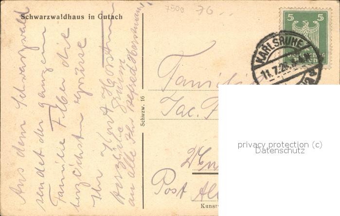 71510396 alte Postkarte Gutach Schwarzwald Schwarzwaldhaus postalisch gelaufen Erhaltung siehe scans KatCode: 11110008317039