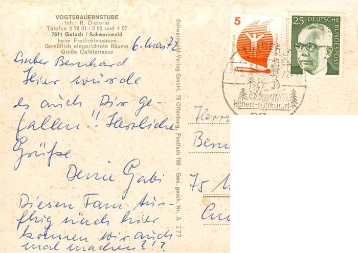73928499 alte Postkarte Gutach Schwarzwald Vogtsbauernstube postalisch gelaufen Erhaltung siehe scans [FriedD77] KatCode: 11110008317039