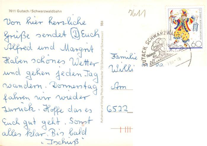 73928962 Gutach Schwarzwaldbahn Panorama Kirche Schwarzwaldhaus postalisch gelaufen Erhaltung siehe scans [FriedD77] alte Postkarte Frie Katcode 11110008317039