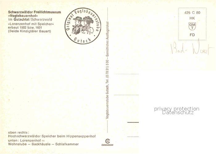 72665917 Gutachtal Schwarzwaelder Freilichtmuseum Vogstbauernhof postalisch nicht gelaufen Erhaltung siehe scans [WerneD78] KatCode: 11110008317039