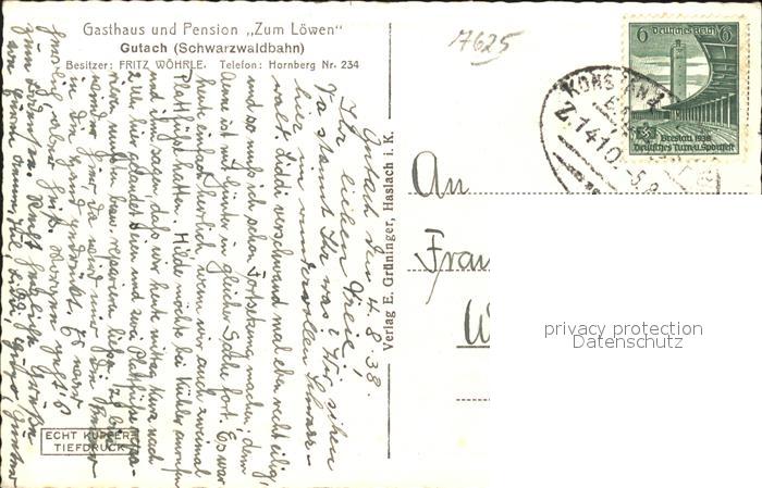 31727401 alte Postkarte Gutachtal Schwarzwaldbahn Bahnpost Gasthaus Pension Zum Loewen postalisch gelaufen KatCode: 11110008317039