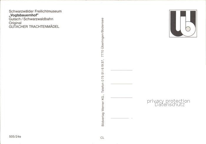 72455113 Gutachtal Schwarzwaldbahn Gutacher Trachtenmaedel postalisch nicht gelaufen Erhaltung siehe scans KatCode: 11110008317039