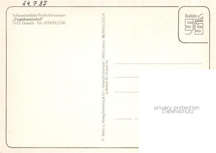 72948534 Gutachtal Vogtsbauernhof Freilichtmuseum postalisch nicht gelaufen Erhaltung siehe scans [KathaD81] KatCode: 11110008317039