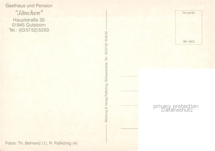 73644231 Guteborn Gasthaus Pension Jaenchen Gaststube Saal Kapelle postalisch nicht gelaufen Erhaltung siehe scans [FriedD77] KatCode: 11110012066120