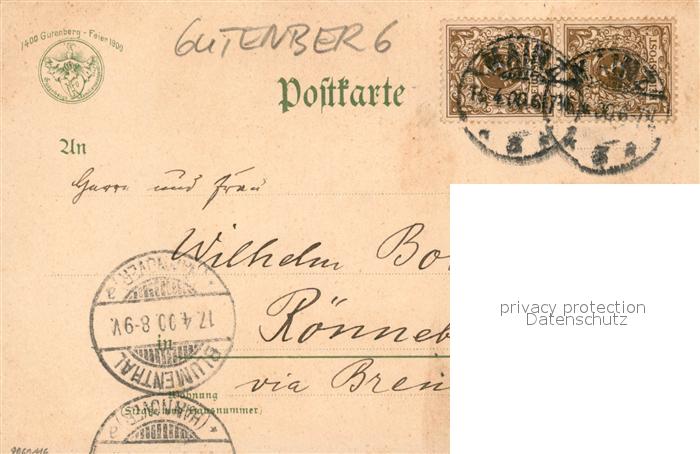 33573966 alte Postkarte Gutenberg Johannes Buchdruck postalisch gelaufen Erhaltung siehe scans [PaolaD17] KatCode: 22060000001900