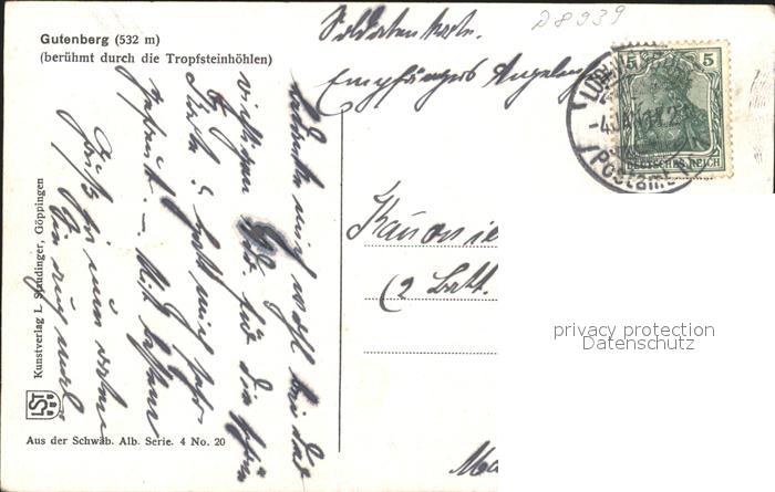 71839654 alte Postkarte Gutenberg Lenningen postalisch gelaufen Erhaltung siehe scans KatCode: 11110008116079