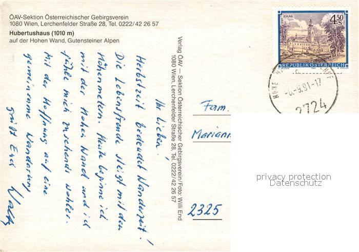 73073025 alte Postkarte Gutenstein Niederoesterreich Hubertushauis postalisch gelaufen Erhaltung siehe scans [KathaD81] KatCode: 11390122032308