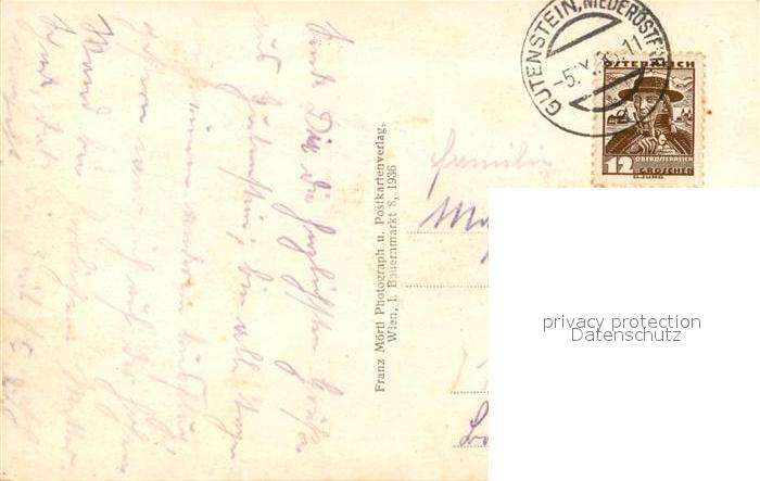 43077902 alte Postkarte Gutenstein Niederoesterreich mit Ruine postalisch gelaufen Erhaltung siehe scans [WerneD78] KatCode: 11390122032308