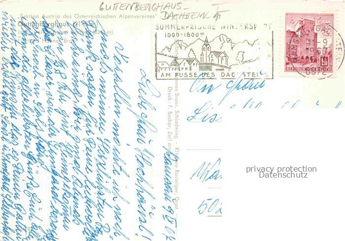74157551 alte Postkarte Guttenberghaus 2187m Dachstein AT Schutzhuette Felsenwand Berglandschaft Geroell Almhuette Felsgipfel postalisch gelaufen Erhaltung siehe scans [Karloger] KatCode: 11390222061242