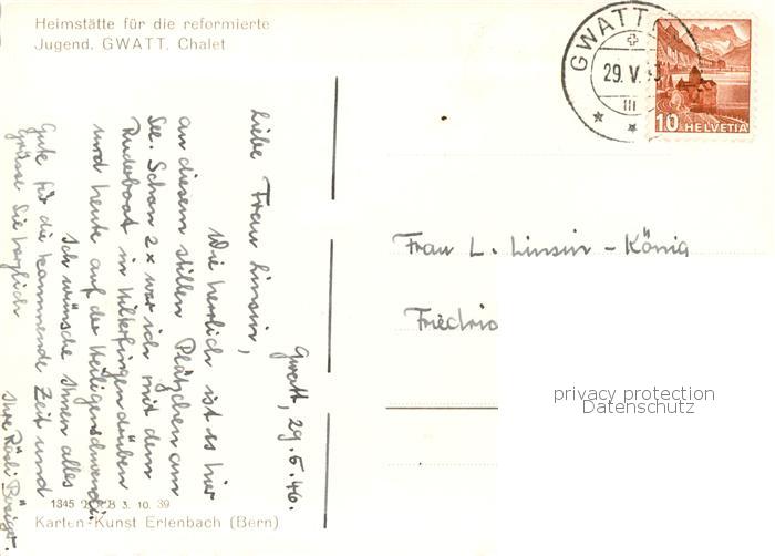 13860699 alte Postkarte Gwatt BE Chalet Heimstaette fuer die reformierte Jugend Alpen postalisch gelaufen Erhaltung siehe scans [FriedD77] KatCode: 11470060240810