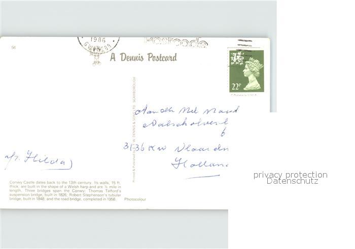 old postcard Gwynedd Wales Conwy Castle and Suspension Bridge postalisch gelaufen Erhaltung siehe scans
