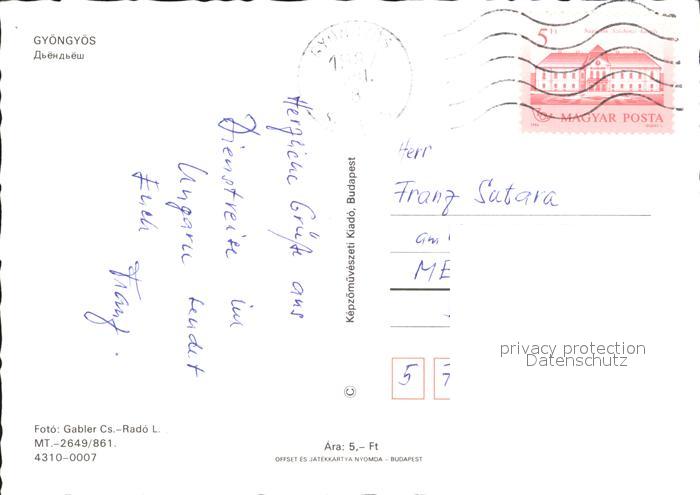 old postcard Gyoengyoes Stadtblick Strassenpartie Kirche Monument postalisch gelaufen Erhaltung siehe scans