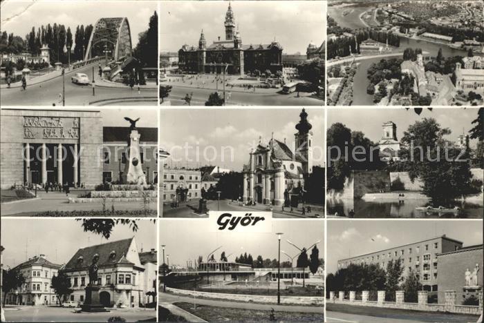 old postcard Gyoer Teilansichten Sehenswuerdigkeiten der Stadt postalisch gelaufen Erhaltung siehe scans