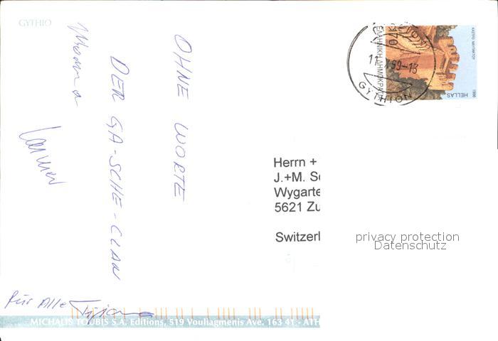 old postcard Gythio Teilansicht mit Fischer postalisch gelaufen Erhaltung siehe scans [AndreD76 kt121box]