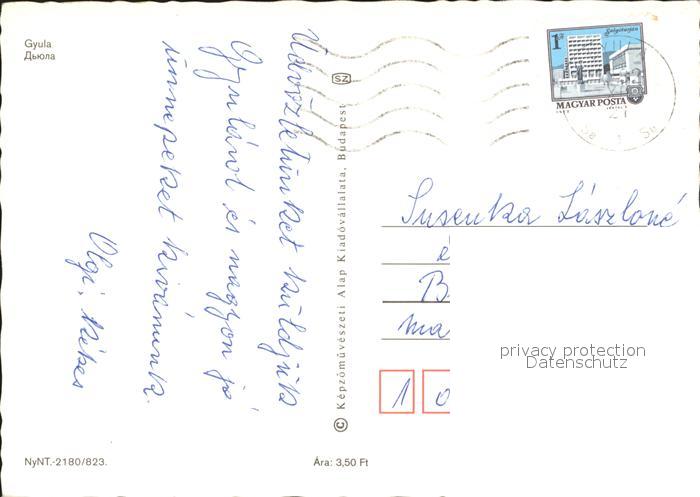 old postcard Gyula Schloss Monument Schwimmbad Halle postalisch gelaufen Erhaltung siehe scans