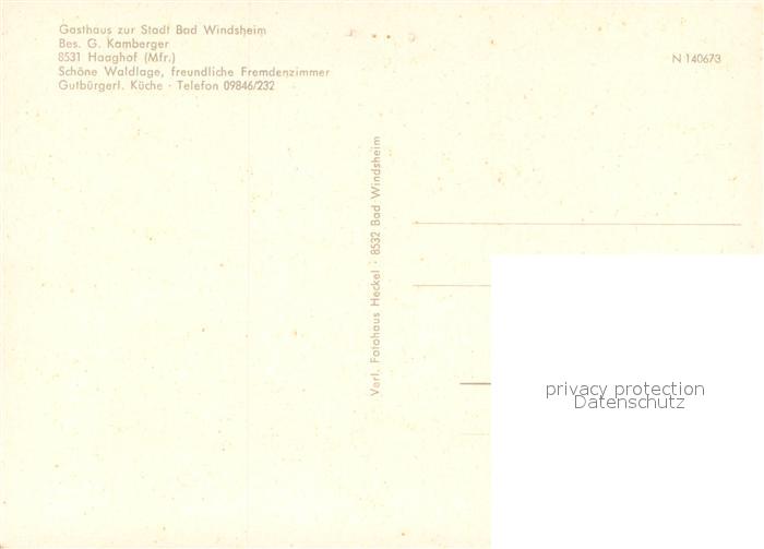 73651283 Haaghof Gasthaus zur Stadt Bad Windsheim postalisch nicht gelaufen Erhaltung siehe scans [WerneD78] KatCode: 11110009575145