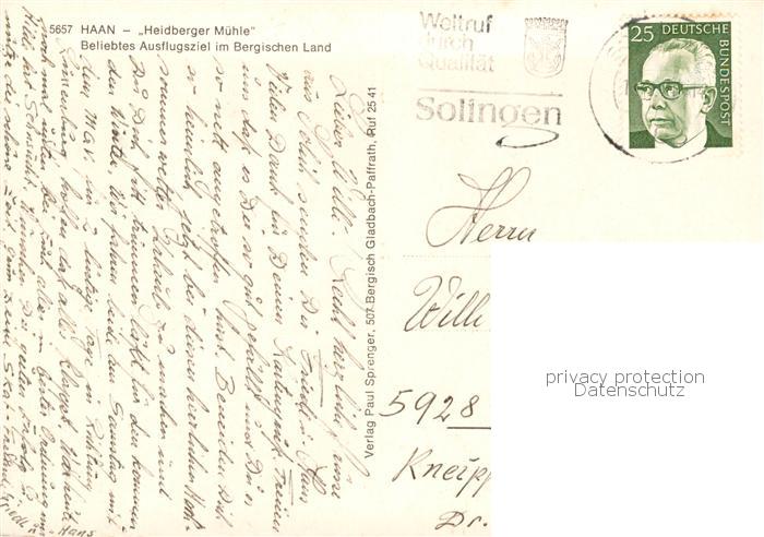 73787029 alte Postkarte Haan Rheinland Heidberger Muehle Ausflugsziel Bergisches Land postalisch gelaufen Erhaltung siehe scans [FriedD77] KatCode: 11110005158008