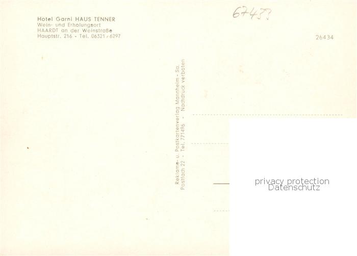 73867095 Haardt Neustadt Weinstrasse Hotel Haus Tenner Terrasse postalisch nicht gelaufen Erhaltung siehe scans [FriedD77] Frie Katcode 11110007316000