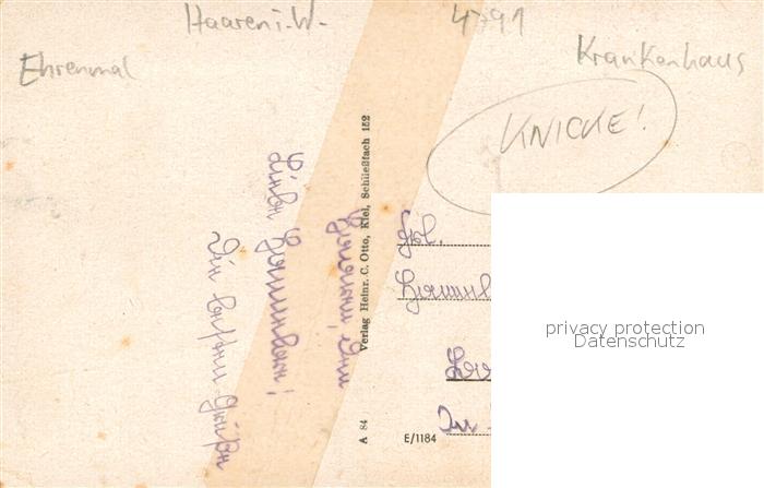 73703104 Haaren Bueren Kriegerehrenmal Krankenhaus Teilansicht postalisch nicht gelaufen Erhaltung siehe scans [LiesaD40] KatCode: 11110005774040