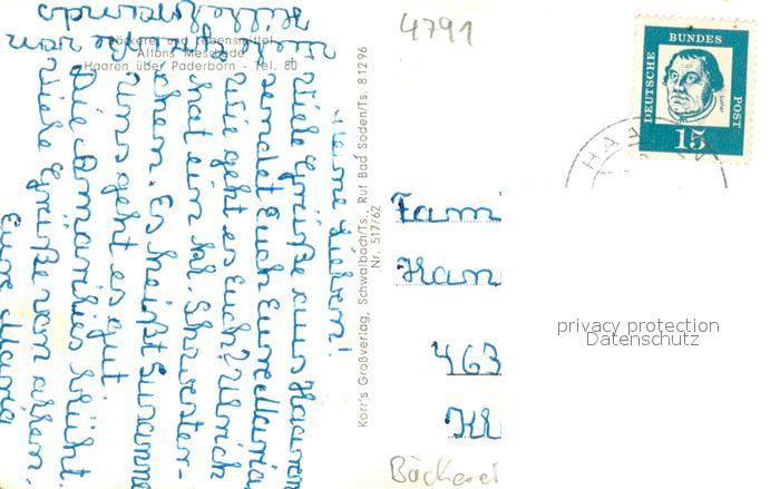 73703102 alte Postkarte Haaren Bueren Teilansichten Baeckerei und Lebensmittel Alfons Meschede postalisch gelaufen Erhaltung siehe scans [LiesaD40] KatCode: 11110005774040