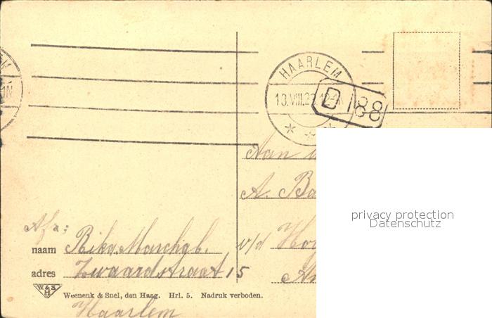 old postcard Haarlem Gasthuissingel Kanal Boot postalisch gelaufen Erhaltung siehe scans