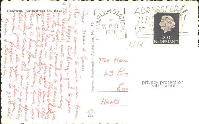 old postcard Haarlem Kathedraal St Bavo Kathedrale postalisch gelaufen Erhaltung siehe scans