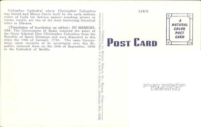 Habana Havana Tablet at Columbus Cathedral and Morro Castle postalisch nicht gelaufen Erhaltung siehe scans