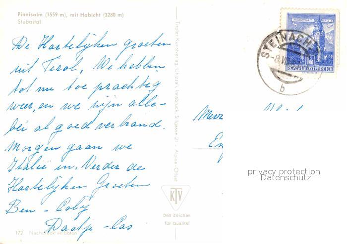 72870421 alte Postkarte Habicht Pinnisalm Stubaital postalisch gelaufen Erhaltung siehe scans [LiesaD40] KatCode: 11390332070334