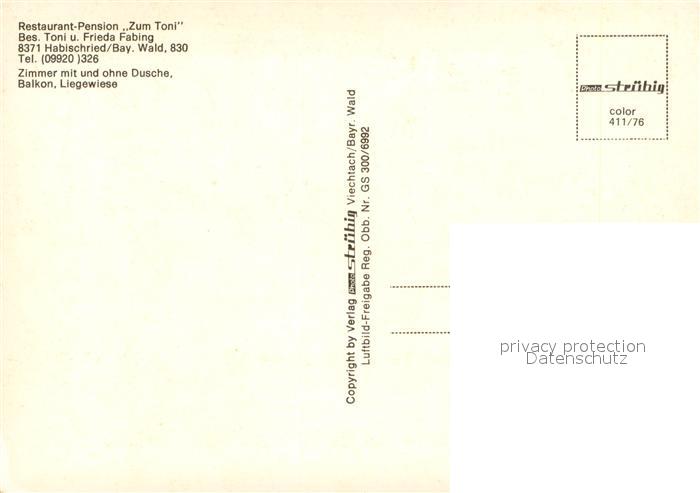 73644104 Habischried Niederbayern Restaurant Pension Zum Toni Fliegeraufnahme postalisch nicht gelaufen Erhaltung siehe scans [WerneD78] KatCode: 11110009276116