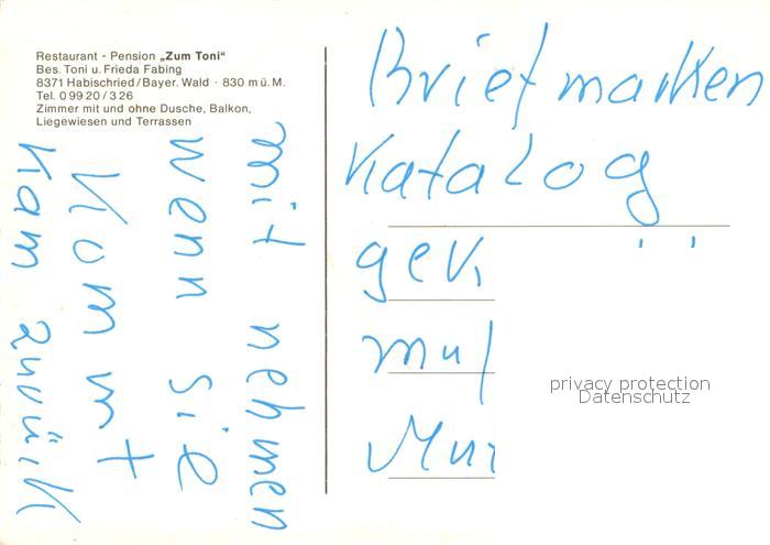 73732139 Habischried Niederbayern Restaurant-Pension Zum Toni Sommer-Winter postalisch nicht gelaufen Erhaltung siehe scans [LiesaD40] KatCode: 11110009276116