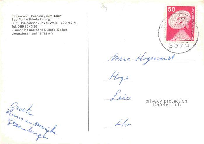 74086674 alte Postkarte Habischried Niederbayern Restaurant Zum Toni Gastraum postalisch gelaufen Erhaltung siehe scans [WerneD78] KatCode: 11110009276116